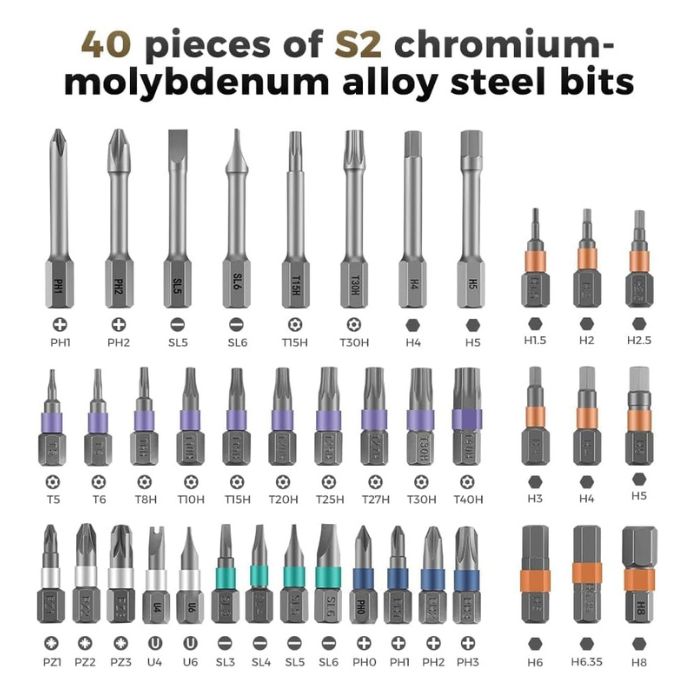- From appearance to material, from material to tactile experience tactile experience to practicality, every aspect is our commitment to you. User-Friendly Color-Coding System. Color-Coded Wraparound Design for Bit Retrieval, Clear and Easy. Chromium-molybdenum alloy steel, CNC lathe milling one-time forming car buying and tempering heat treatment, industrial-grade durability.Magnet Groove Design. The handle has built-in strong magnets, which se